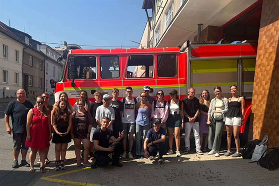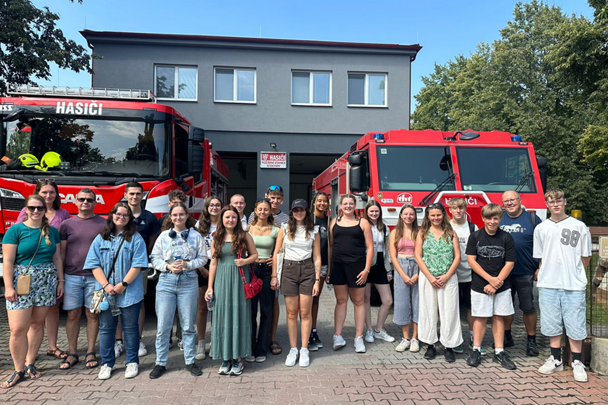 Am Donnerstag durfte die Berufsfeuerwehr in Kladno, einer Stadt nahe Stochov mit 60.000 Einwohnern, besucht werden. Die Anwesenden waren erstaunt über die hochmoderne Technik, die auf den Fahrzeugen verbaut ist. Alle Fragen wurden fachkundig beantwortet und die Feuerwehrfahrzeuge durften intensiv begutachtet werden.