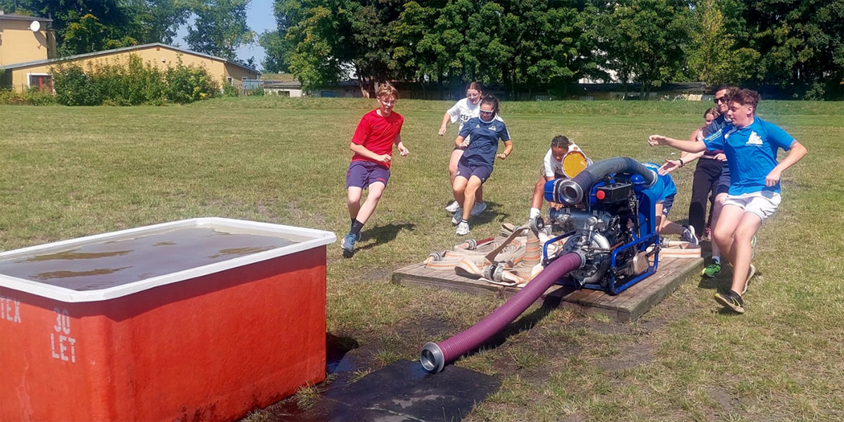 Von der Jugendfeuerwehr Lany wurde den Teilnehmern der anderen Länder der Aufbau einer Löschleitung gezeigt. Auch unsere Teilnehmer konnten hierbei Topzeiten hinlegen, wenn auch nicht ganz so schnell wie die tschechischen Freunde.